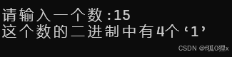 我们也可以将这个数(n)按位与(n-1),这样可以巧妙地把二进制中1前面的0全消了,同样只要进行一次计数器就加一