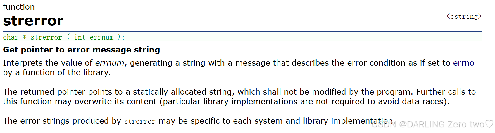 strerror 用于将一个错误码(由 errno 表示)转换为对应的、人类可读的错误描述字符串 需要包含头文件 #include <string.h>