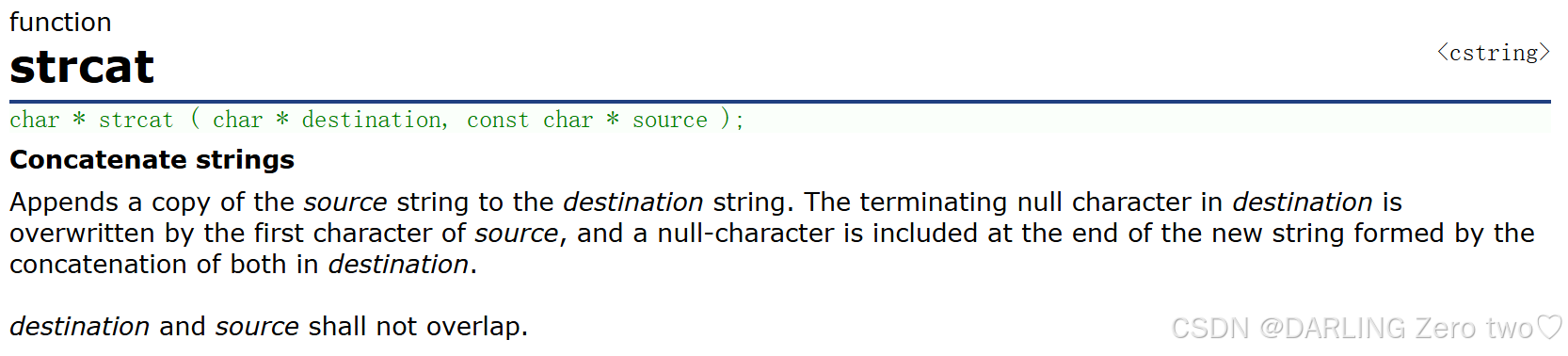 值得注意的是:源字符串必须以 ‘\0’ 结束,目标字符串中也得有 \0 ,否则没办法知道追加从哪里开始,目标空间必须有足够的大,能容纳下源字符串的内容,目标空间必须可修改,追加过程中是会覆盖掉目标字符串末尾的 \0 的