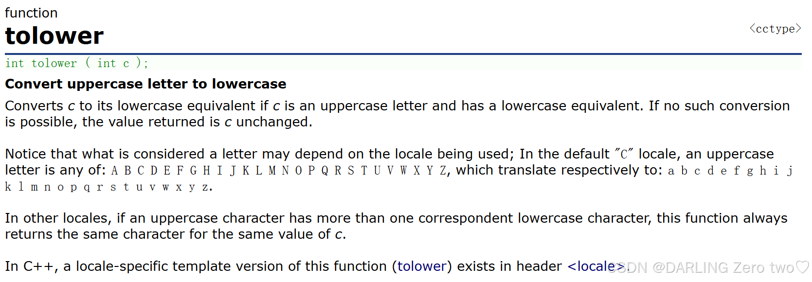 tolower 用于将参数传进去的大写字母转小写,与 islower 不同的是,islower 只是判断,tolower是直接转换。toupper 用于将参数传进去的小写字母转大写,与 tolower 同理