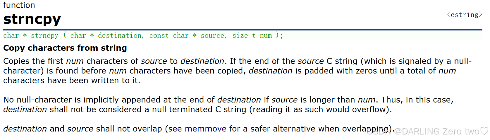 唯一与 strcpy 不同的是它可以固定复制的个数,不只是以 \0 为标准停下来