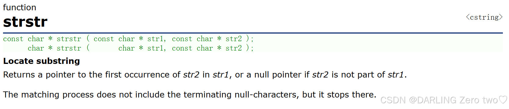 strstr 用于查找在一个字符串中查找另一个指定字符串(子字符串)的首次出现位置 需要包含头文件 #include <string.h>