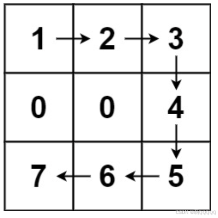 输入:forest = [[1,2,3],[0,0,4],[7,6,5]]