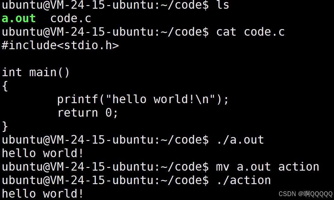 将文件编译好之后,无论将a.out改成什么名字,都可以正常执行;
