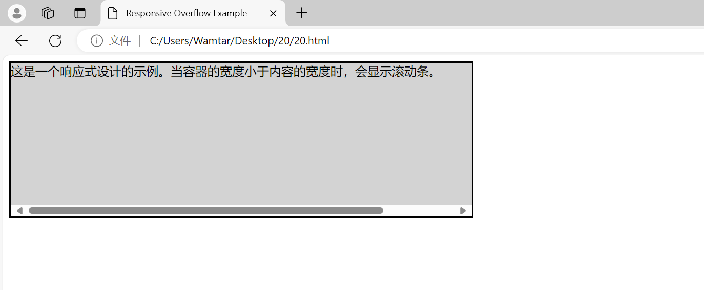 这是一个响应式设计的示例。当容器的宽度小于内容的宽度时,会显示滚动条。