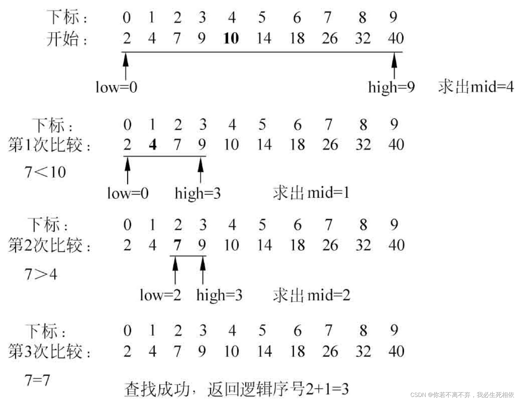 以下图片来自《数据结构简明教程》,查找关键字为7的元素: