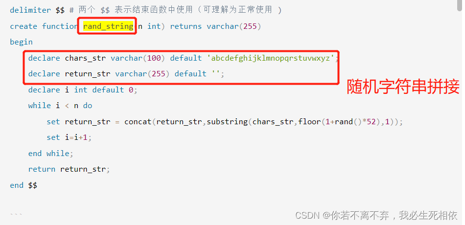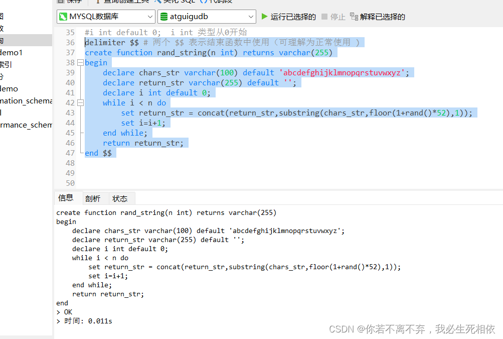 end $$执行完语句后,在终端上输入select rand_string(2)