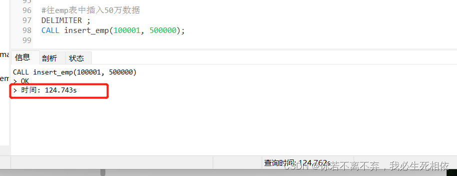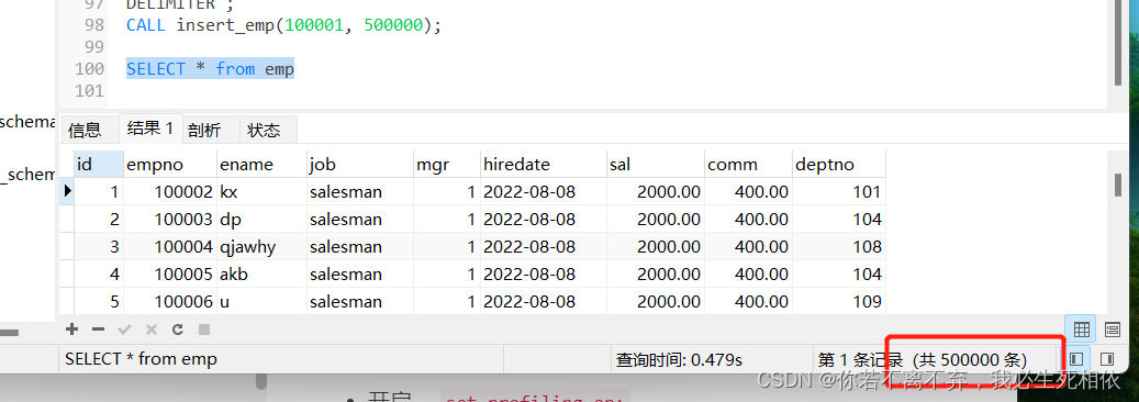 CALL insert_dept(100, 10);往emp表中插入50万数据