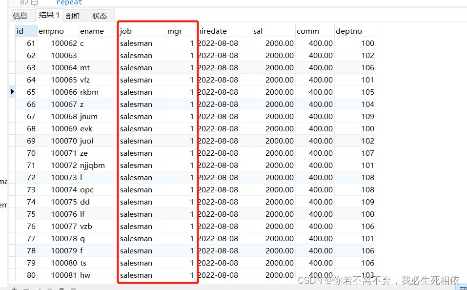 salesman:默认值;所有的值都是这个不变的 0001:所有的值都是1 也是不变的