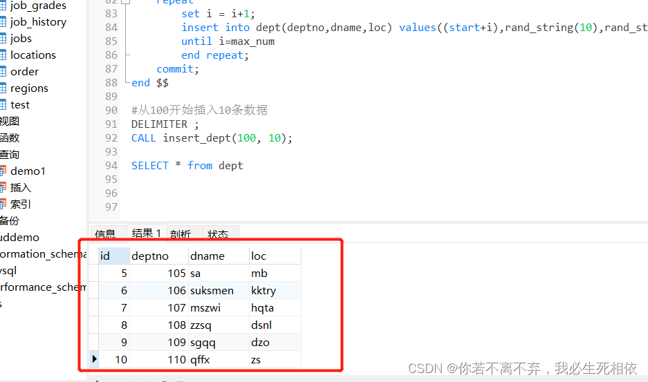 insert into dept(deptno,dname,loc) values((start+i),rand_string(10),rand_string(8));