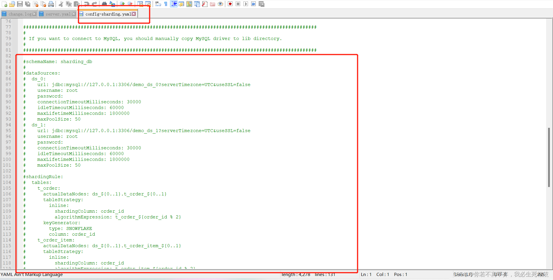 2 、修改 conf 里面配置文件, config-master-slave.yaml