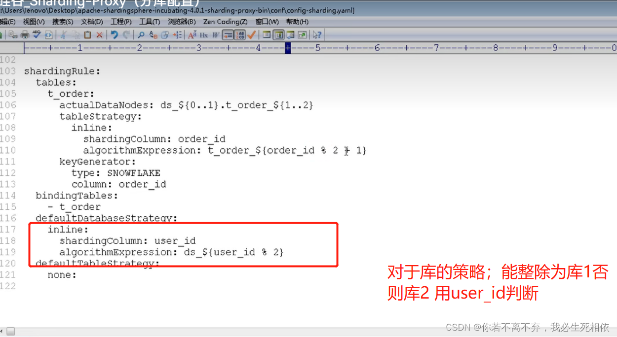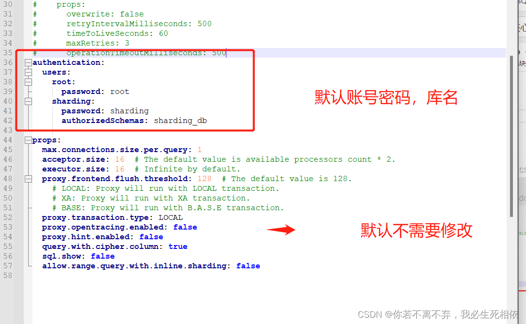 注意事项 1)Sharding-Proxy 默认不支持hint,如需支持,请在conf/server.yaml中,将props的属性proxy.hint.enabled设置为true。在Sharding-Proxy中,HintShardingAlgorithm的泛型只能是 String类型 2)Sharding-Proxy默认使用3307端口,可以通过启动脚本追加参数作为启动端口号。如: bin/start.sh 3308 3)Sharding-Proxy使用conf/server.yaml配置注册中心、认证信息以及公用属性 4)Sharding-Proxy支持多逻辑数据源,每个以"config-"做前缀命名yaml配置文件,即为一个逻辑数据源