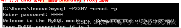 4 、打开 cmd 仓库,连接 Sharding-Proxy 服务