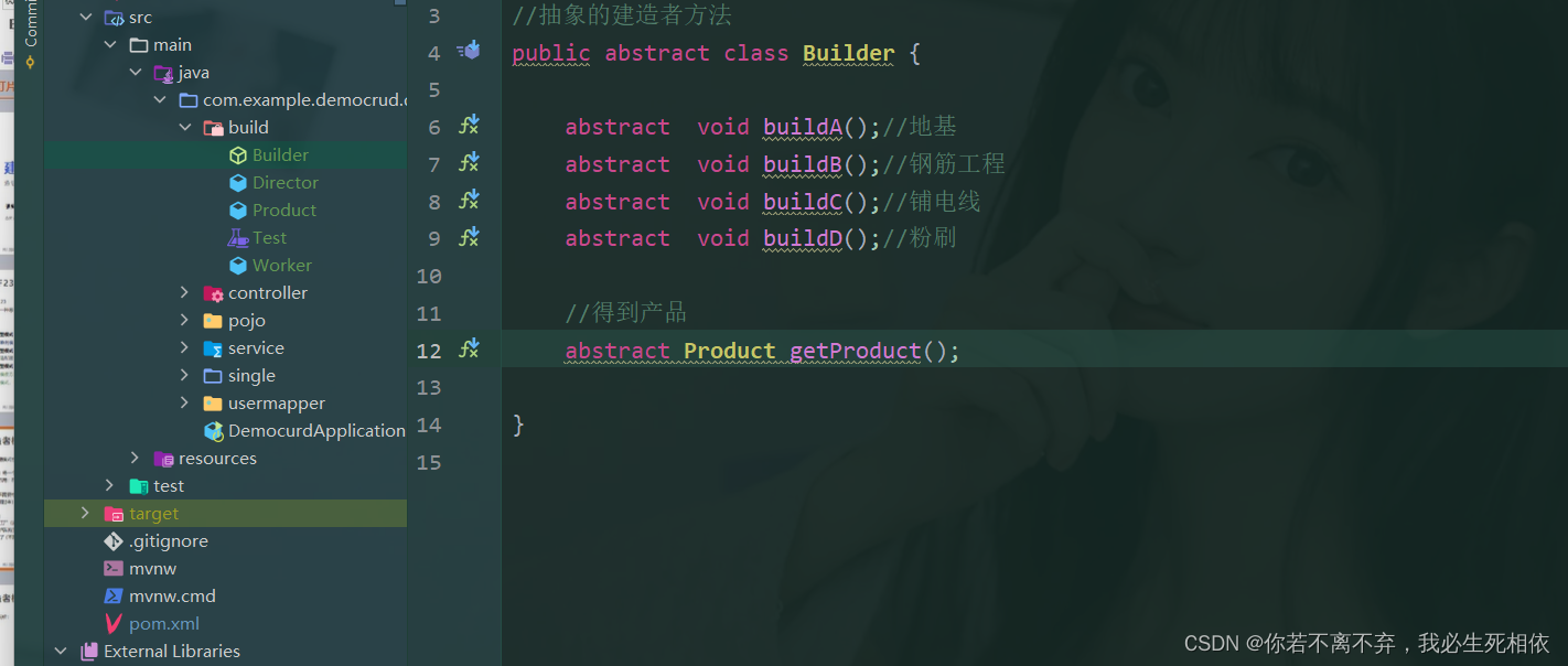 关键代码:建造者:创建和提供实例,导演:管理建造出来的实例的依赖关系。