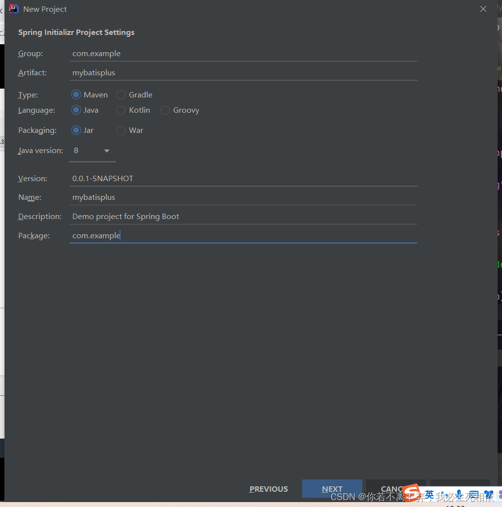 IDE:2021 JDK: JDK1.8+ MySQL版本:5.7.3 SpringBoot:2.7.1 MyBatis-Plus:3.3.1
