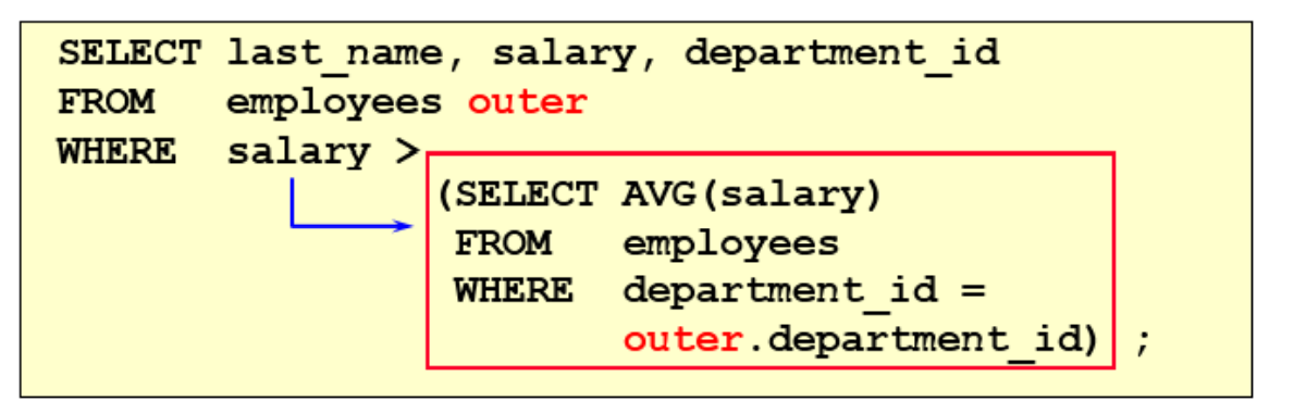 FROM employees e1,(SELECT department_id,AVG(salary) dept_avg_sal FROM employees GROUP