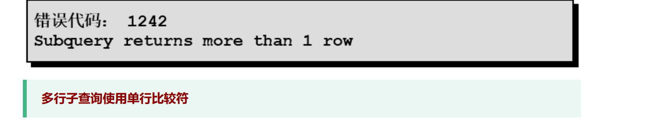 分类方式1: 我们按内查询的结果返回一条还是多条记录,将子查询分为 单行子查询 、 多行子查询 。