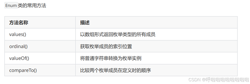 优点:将常量组织起来统一进行管理 场景:错误状态码,消息类型,颜色的划分,状态机等等.... 本质:是 java.lang.Enum 的子类,也就是说,自己写的枚举类,就算没有显示的继承 Enum ,但是其默认继承了这个类。