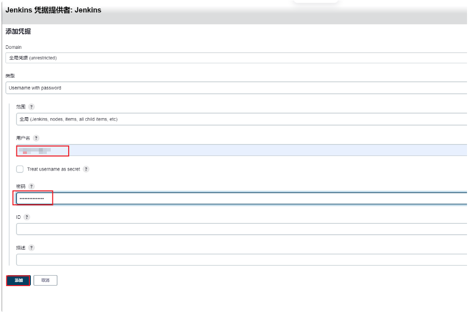 在弹出页面输入我们的用户名和密码,点击添加