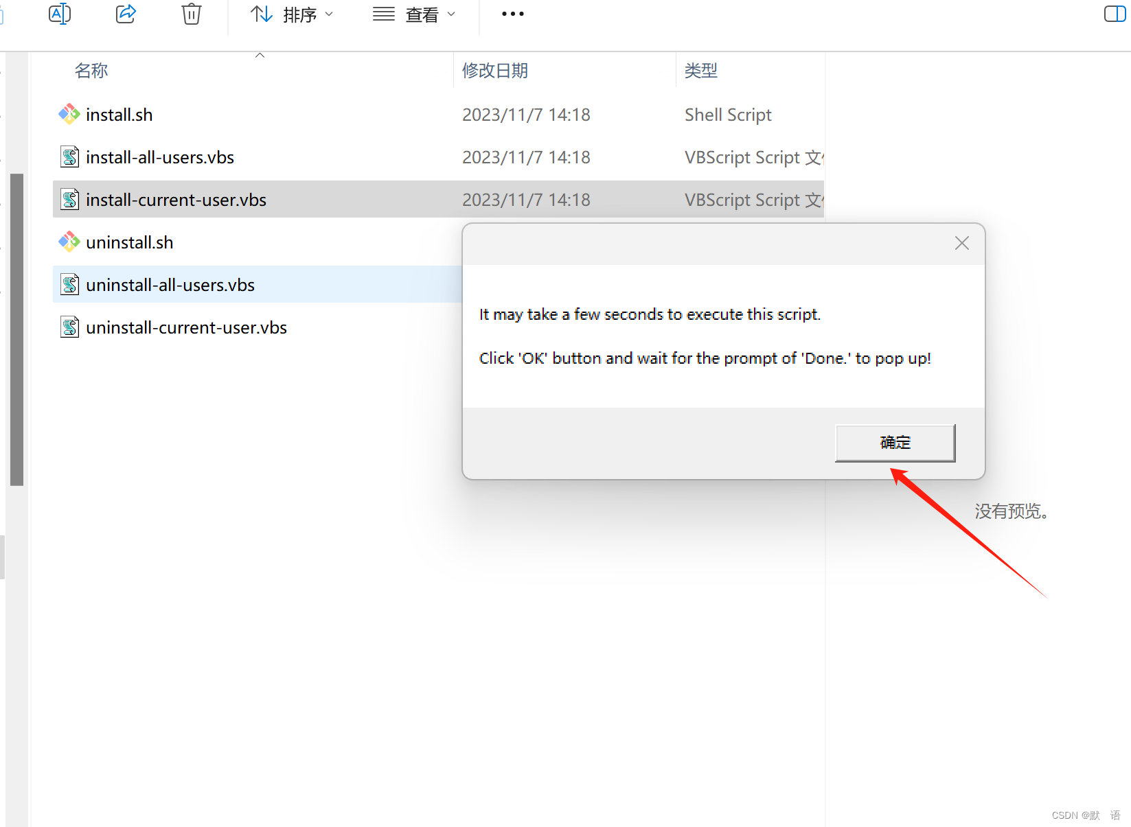 先执行unistall-current-user.vbs,直接双击打开,此步骤是为了防止之前有过激活信息,确保当前环境变量下没有激活工具的变量信息,可先执行卸载脚本在再进行后面的激活操作,避免激活失败。