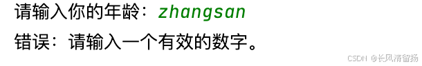 # 注意:如果用户输入的不是一个可以转换为整数的字符串(比如字母或特殊字符),这段代码将抛出一个ValueError异常。