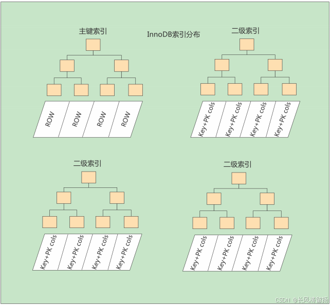 );默认情况下,id 列是聚簇索引。当你插入数据时,数据行会按照 id 的顺序存储在磁盘上。