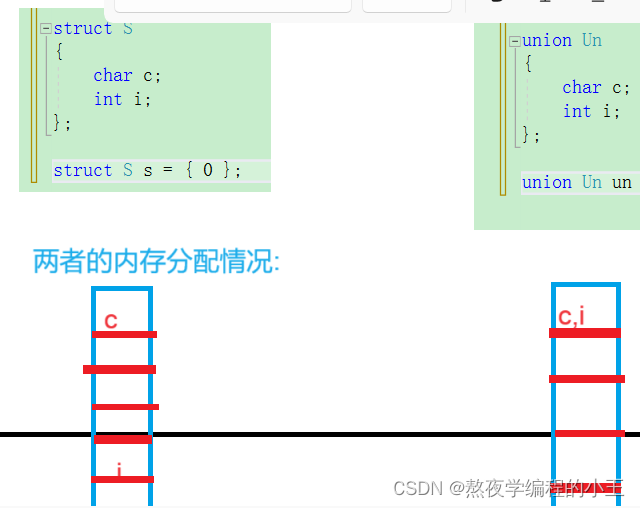 像结构体一样,联合体也是由一个或多个成员构成,这些成员可以是不同类型。