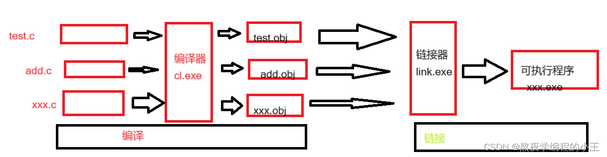 (1) 多个 .c 文件单独经过编译器,编译处理生成对应的目标文件。