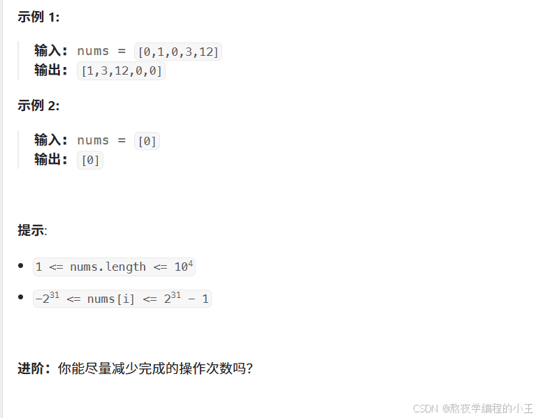 给定一个数组 nums,编写一个函数将所有 0 移动到数组的末尾,同时保持非零元素的相对顺序。