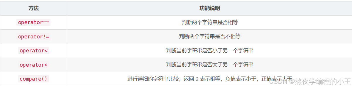 字符串是表示字符序列的类 1. 标准的字符串类提供了对此类对象的支持,其接口类似于标准字符容器的接口,但添加了专门用于操作单字节字符字符串的设计特性。 2. string类是使用char(即作为它的字符类型,使用它的默认char_traits和分配器类型(关于模板的更多信 息,请参阅basic_string)。 3. string类是basic_string模板类的一个实例,它使用char来实例化basic_string模板类,并用char_traits 和allocator(配置器)作为basic_string的默认参数(根于更多的模板信息请参考basic_string)。 注意,这个类独立于所使用的编码来处理字节:如果用来处理多字节或变长字符(如UTF-8)的序列,这个 类的所有成员(如长度或大小)以及它的迭代器,将仍然按照字节(而不是实际编码的字符)来操作。 总结: string是表示字符串的字符串类 该类的接口与常规容器的接口基本相同,再添加了一些专门用来操作string的常规操作。 string在底层实际是:basic_string模板类的别名,typedef basic_string<char, char_traits, allocator> string; 不能操作多字节或者变长字符的序列。 在使用string类时,必须包含#iostream头文件以及using namespace std;