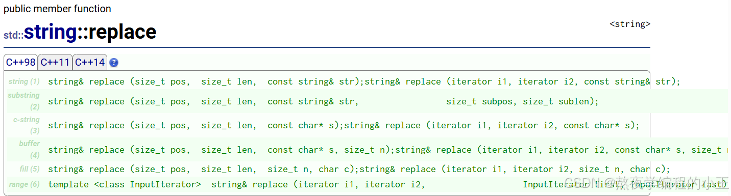s1.replace(6, 3, "C++");//将string s1开始的第六个字符的后面三个字符换成C++