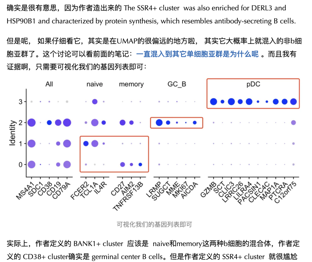 标题是:《Intratumoral CD38+CD19+B cells associate with poor clinical outcomes and immunosuppression in patients with pancreatic ductal adenocarcinoma》,如果是复现作者的数据分析,可以看到作者定义的 SSR4+ cluster 就很尴尬了其实是流式细胞技术的缺陷让b细胞里面混入了pDC这个单细胞亚群而已。详见:流式细胞筛选能保证多大程度的细胞亚群纯度呢。
