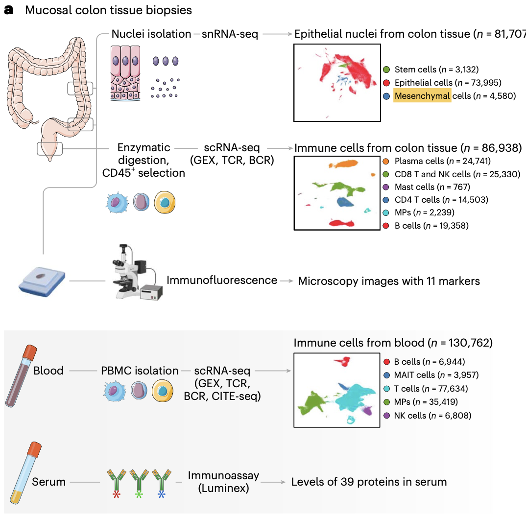 标题是:《Single-cell transcriptomic analyses reveal distinct immune cell contributions to epithelial barrier dysfunction in checkpoint inhibitor colitis》,这个文章是发表在2021的预印本的研究,也就是说早在2020左右就已经完成了152个样品的单细胞转录组,那个时候起码还得三四万一个样品,这就是500万人民币的经费在燃烧了。