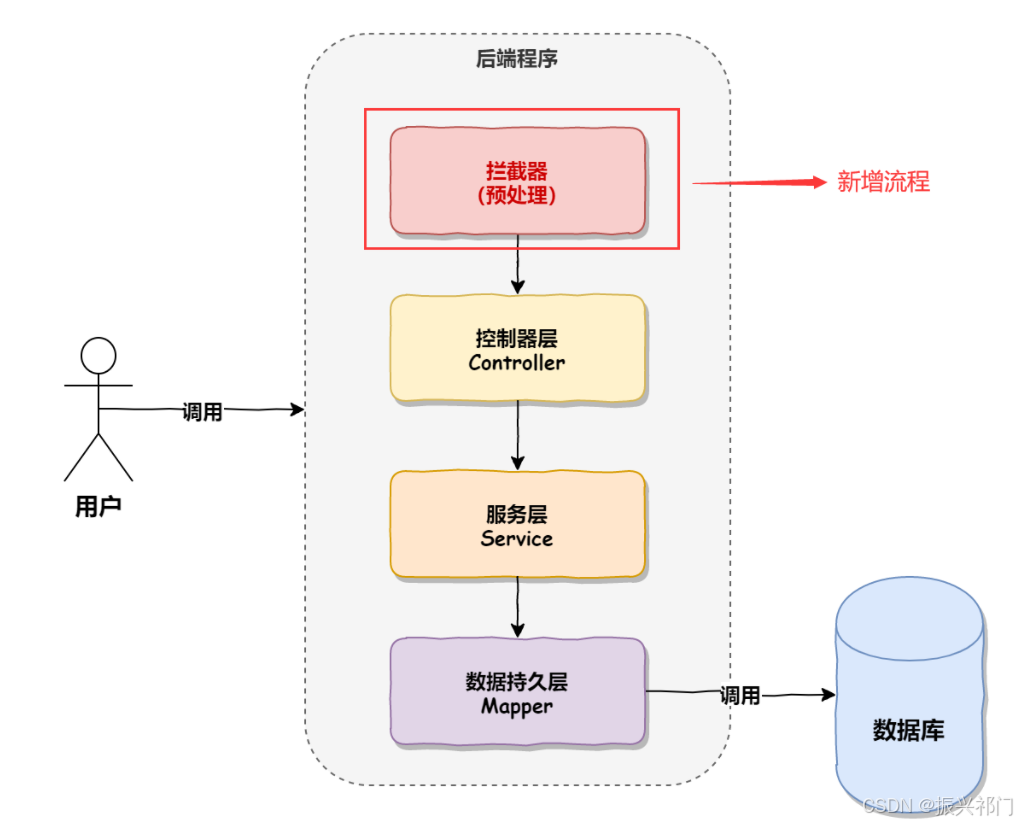 有了拦截器之后,会在调用 Controller 之前进行相应的业务处理,执行的流程如下图