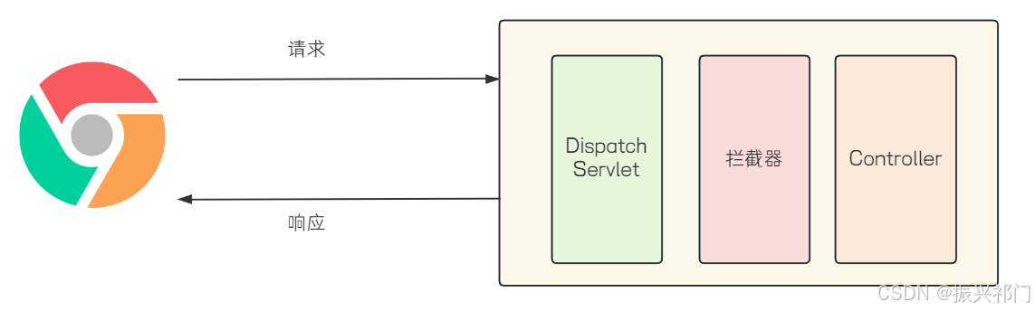 所有请求都会先进到DispatcherServlet,执行doDispatch 调度方法. 如果有拦截器, 会先执行拦截器 方法的代码, 如果 preHandle() 返回true, 继续访问controller中的方法. controller当中的方法执行完毕后,再回过来执行postHandle() 和 afterCompletion(),返回DispatcherServlet, 最终给浏览器响应数据.