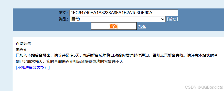 但是我们时输入,有难度的字符串得到的MD5值进行解密,就无法解密成功: