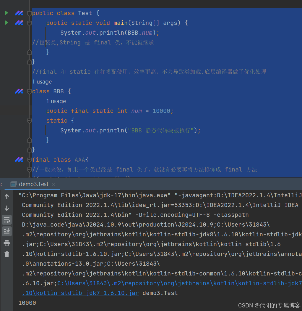 //当不希望类的的某个属性的值被修改,可以用 final 修饰