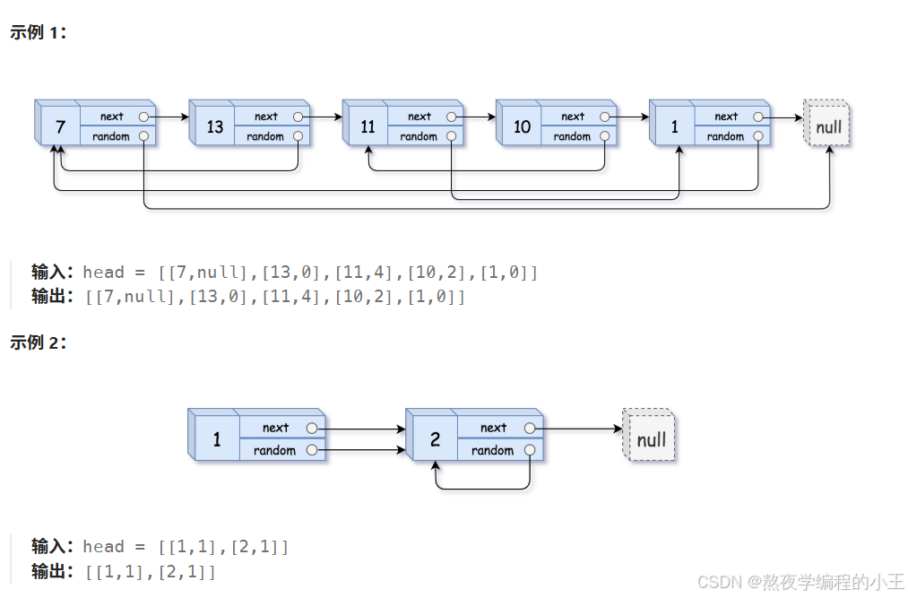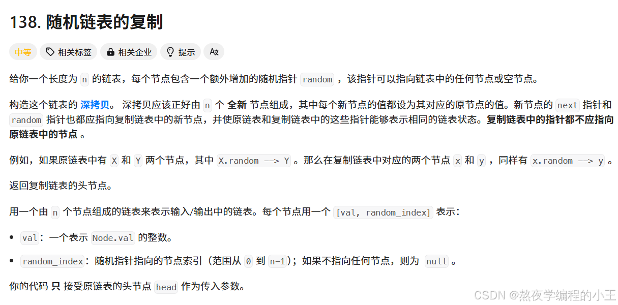 };题目链接:138. 随机链表的复制 - 力扣(LeetCode)