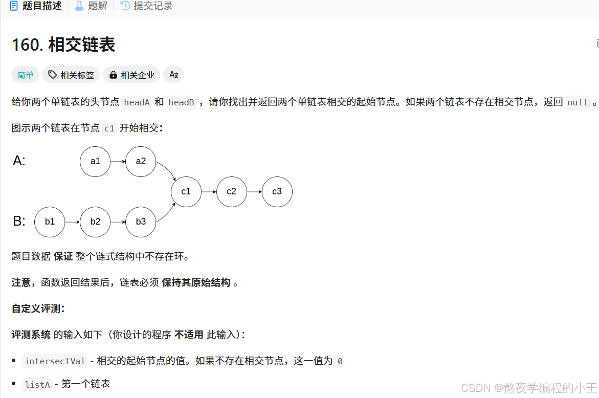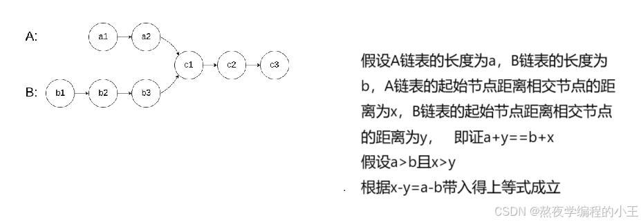 思路:找链表的相交节点,再将链表的相交节点与头结点同时走,相遇时就是相交链表的入口节点。