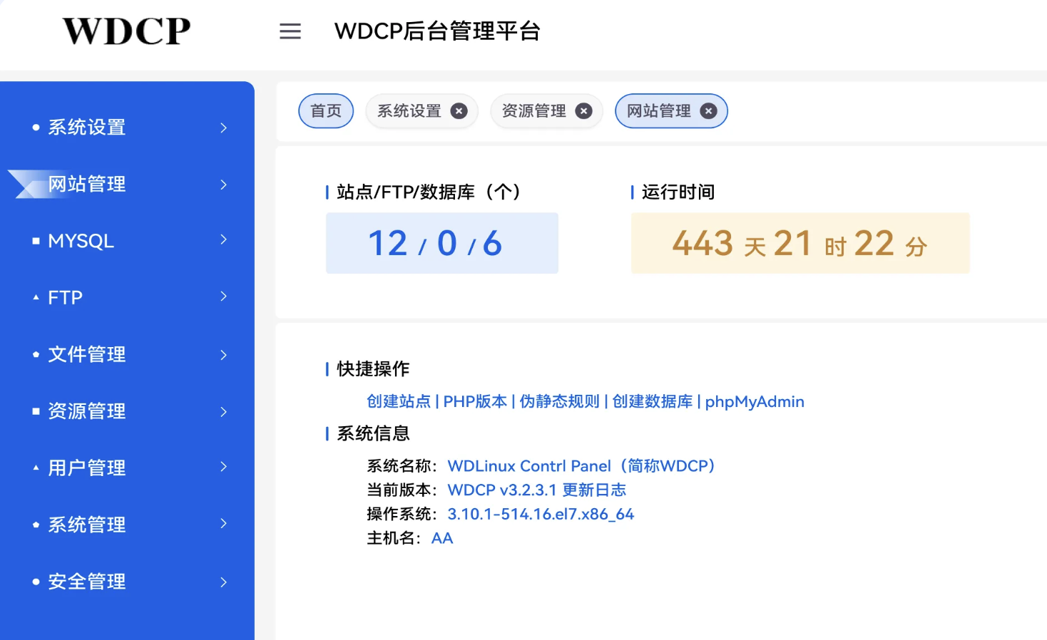 WDCP控制面板设计旨在为用户提供一站式网站及服务器管理解决方案。该控制面板能够轻松实现网站的全面管理,包括新站点的快速创建、现有网站内容的灵活编辑、过时网站的便捷删除以及网站数据的定期备份,确保网站生命周期内的各项操作均得以高效执行。