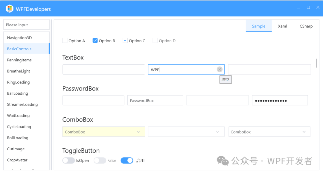 当你已经成功实现了自定义的 Textbox 控件后,实现 PasswordBox 控件也可以按照类似的方法。文中 XAML 中使用 WPFDevelopers 库,如果直接拷贝使用,需要确保将相关的资源和控件进行正确的替换和配置。