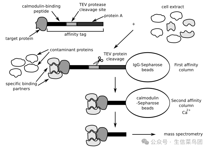 图 3.23 串联亲和纯化(Tandem Affinity Purification, TAP)的原理。
