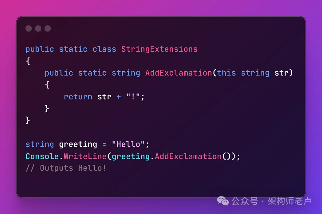 - 扩展方法允许您将方法添加到现有类型中,而无需修改其源代码,从而提高了代码重用的灵活性。