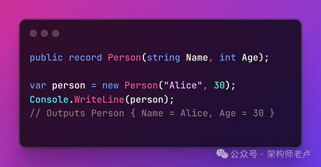 - C# 中的记录类型提供不可变的引用类型,非常适合创建只关心值而不关心行为的数据模型。