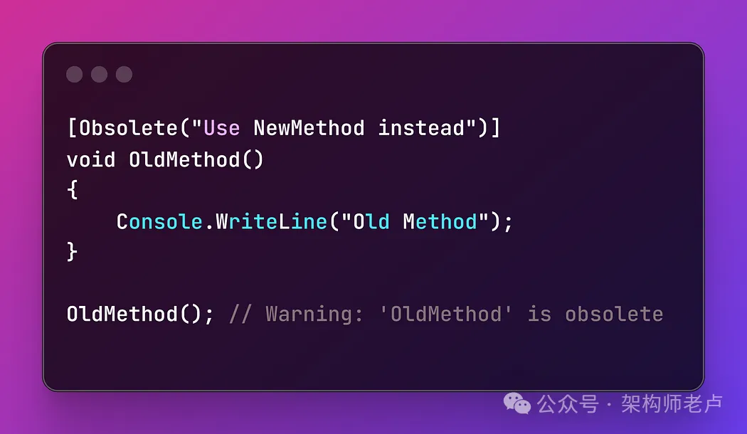 - 属性提供有关代码的元数据,在各种情况下非常有用,例如反射、定义自定义行为或影响编译。
