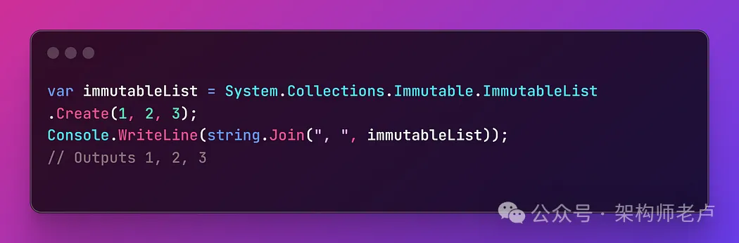 - 不可变集合提供只读集合类型,从而提高线程安全性,并使其更易于处理并发代码。