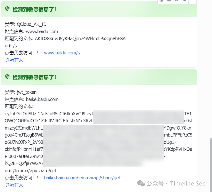 如果需要使用消息提醒功能,请在rule.yaml中加入lark_Webhook的配置信息(暂时只支持飞书消息提醒)、为了防止大量发送信息,这里采用了sleep(1s)进行限速!消息提醒效果如下