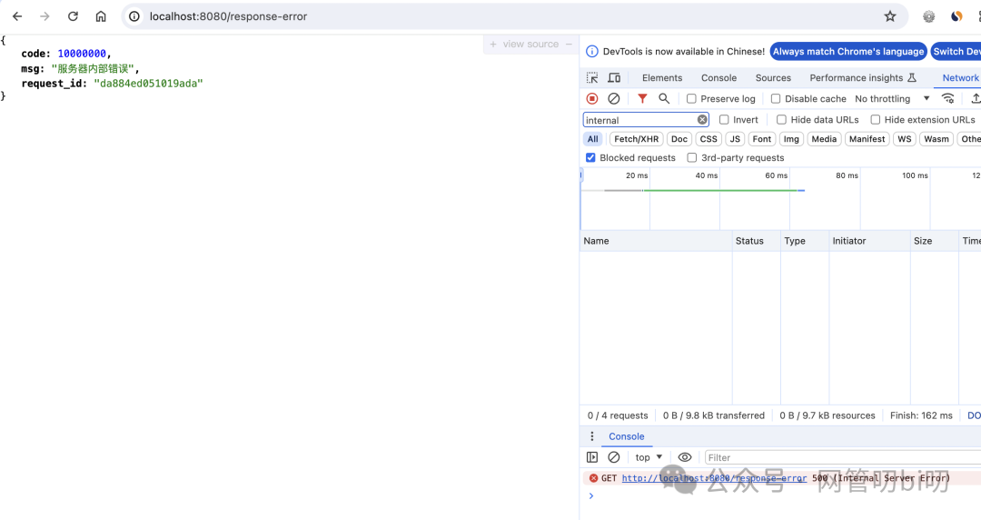 再来一个返回错误响应的测试接口。