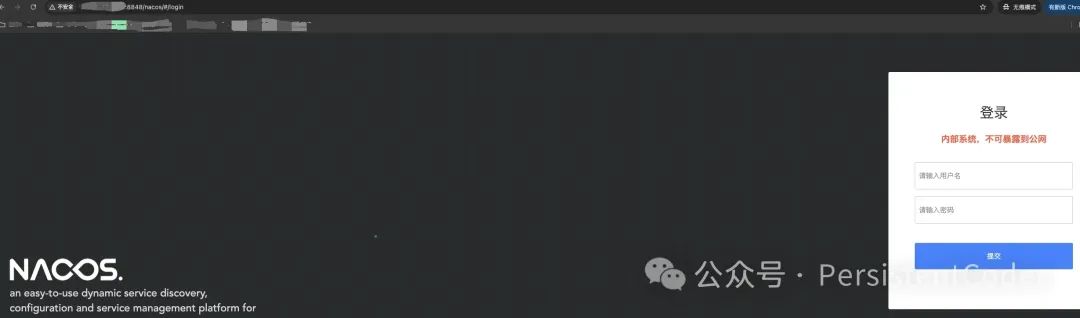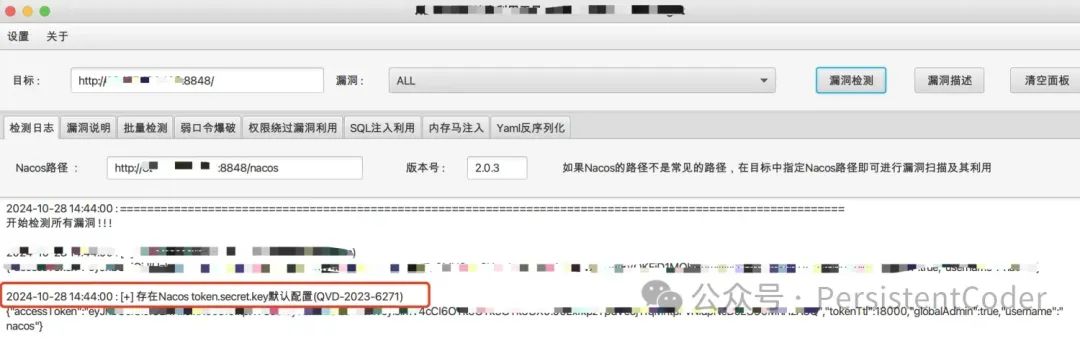 目前Nacos 身份认证绕过漏洞(QVD-2023-6271),开源服务管理平台Nacos在默认配置下未对 token.secret.key 进行修改,导致远程攻击者可以绕过密钥认证进入后台,造成系统受控等后果。