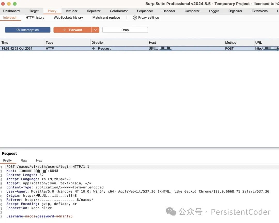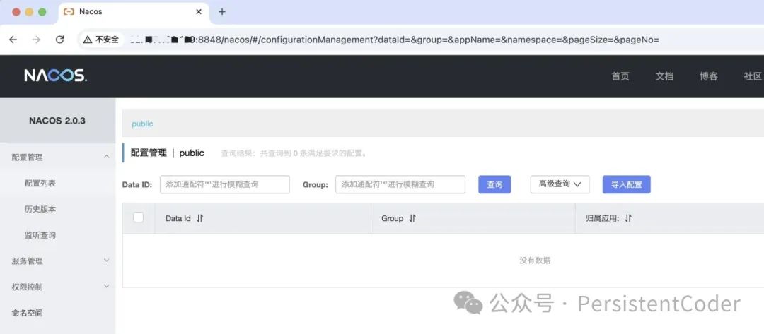 然后跳过后续拦截,回到内置浏览器看到已经绕过登录并进入了nacos配置页面: